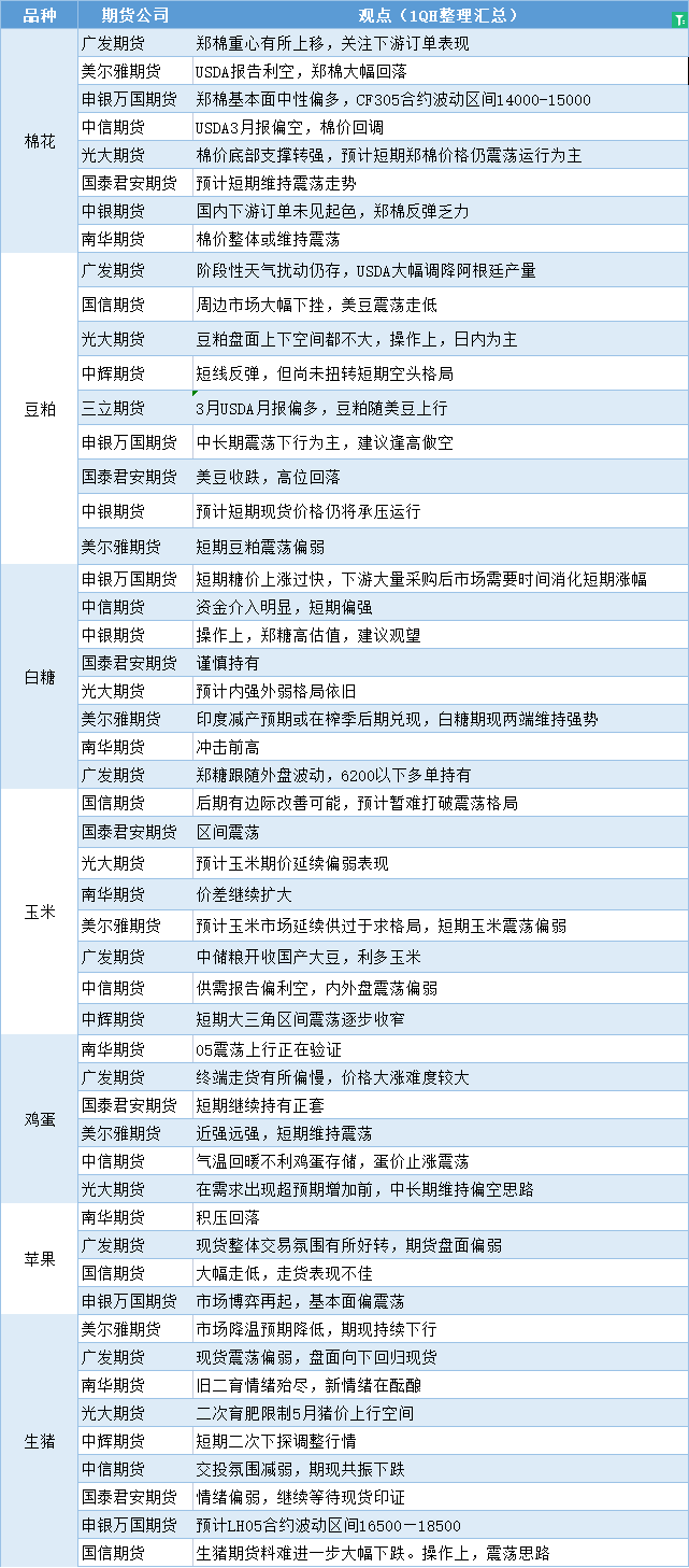 期货公司观点汇总一张图:3月10日农产品(棉花、豆粕、白糖、玉米、鸡蛋、生猪等)