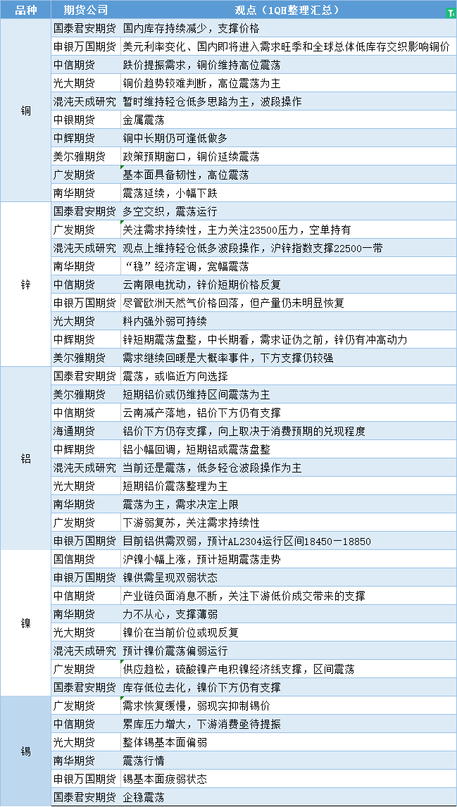 期货公司观点汇总一张图:3月7日有色系(铜、锌、铝、镍、锡等)
