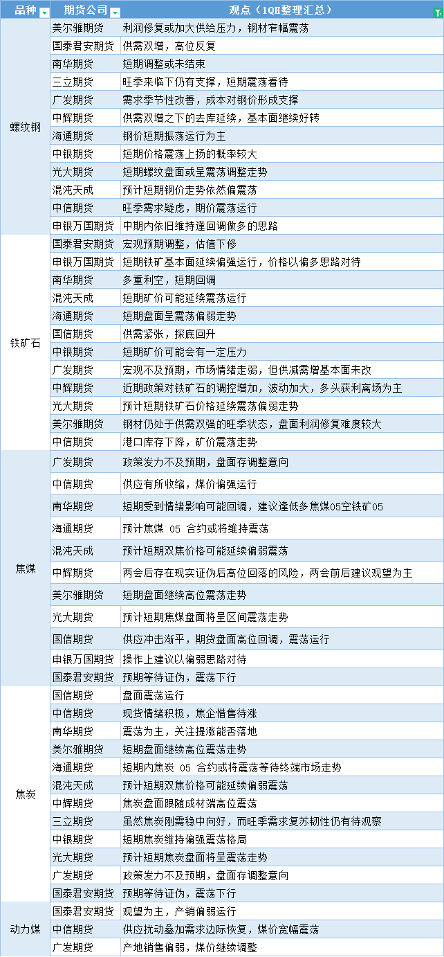 期货公司观点汇总一张图:3月7日黑色系(螺纹钢、焦煤、焦炭、铁矿石、动力煤等)