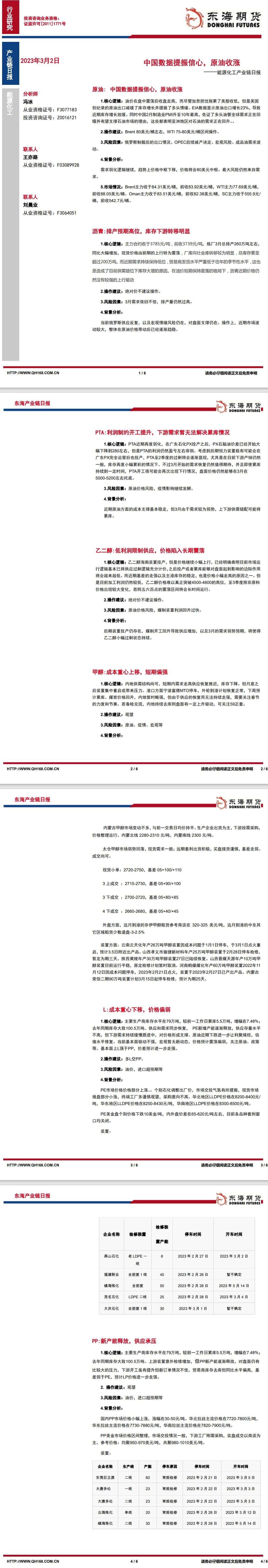 【东海期货3月2日产业链日报】能化篇:中国数据提振信心,原油收涨