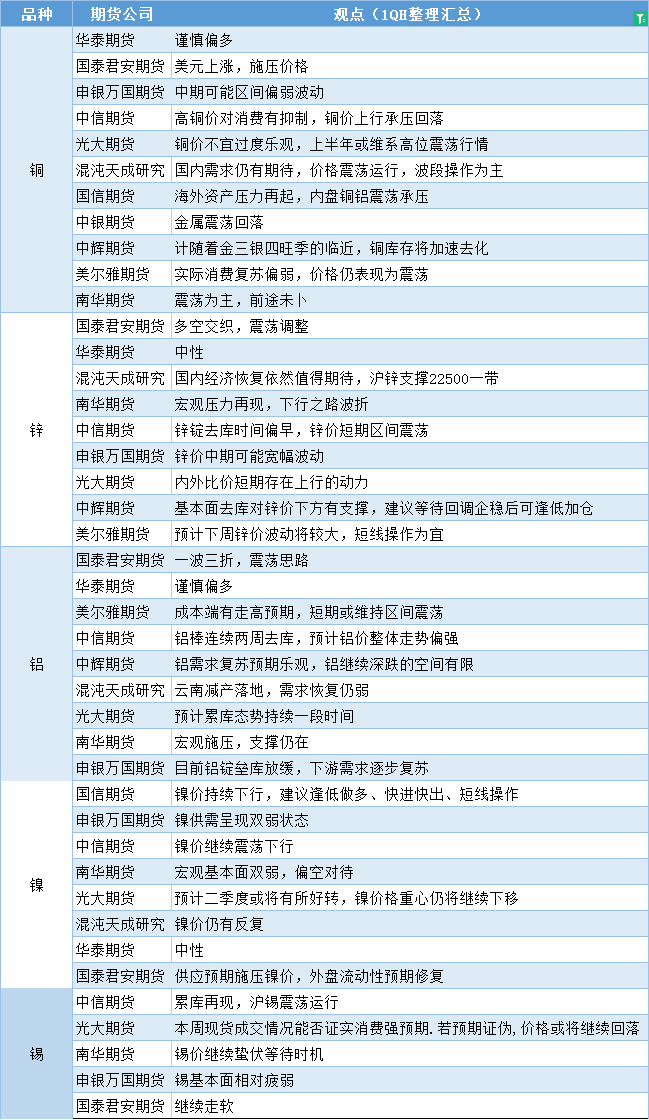期货公司观点汇总一张图:2月27日有色系(铜、锌、铝、镍、锡等)