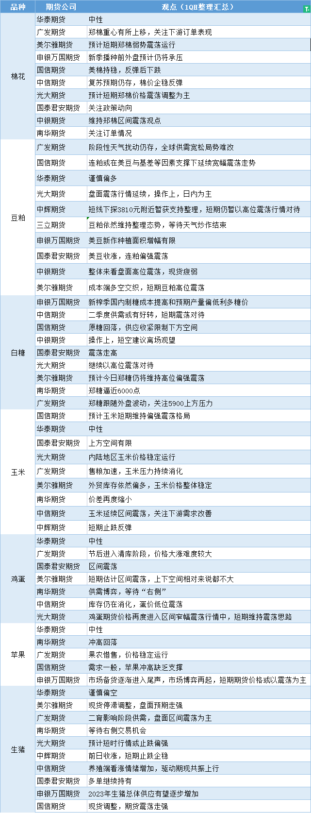 期货公司观点汇总一张图:2月23日农产品(棉花、豆粕、白糖、玉米、鸡蛋、生猪等)
