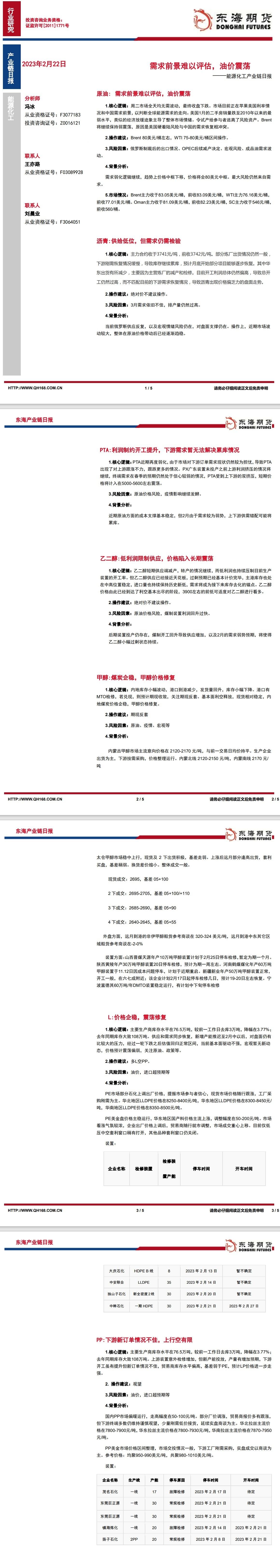 【东海期货2月22日产业链日报】能化篇:需求前景难以评估,油价震荡