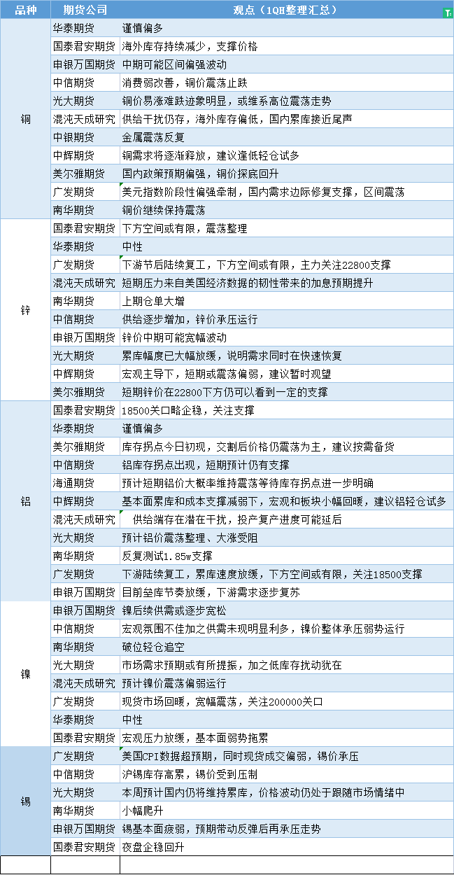 期货公司观点汇总一张图:2月17日有色系(铜、锌、铝、镍、锡等)