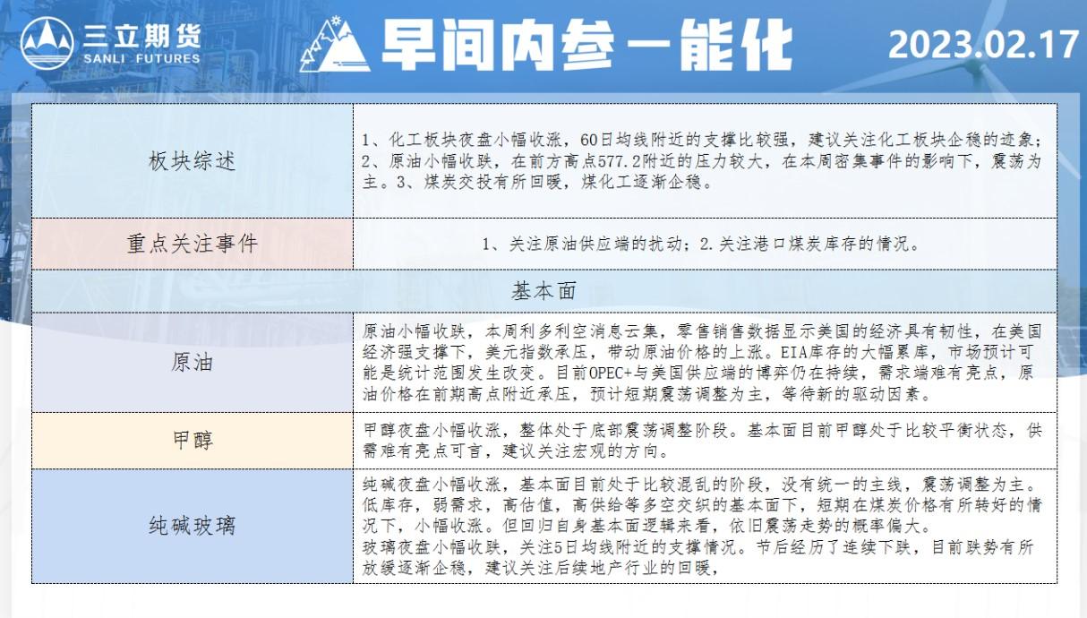 三立期货2月17日早间内参——能化
