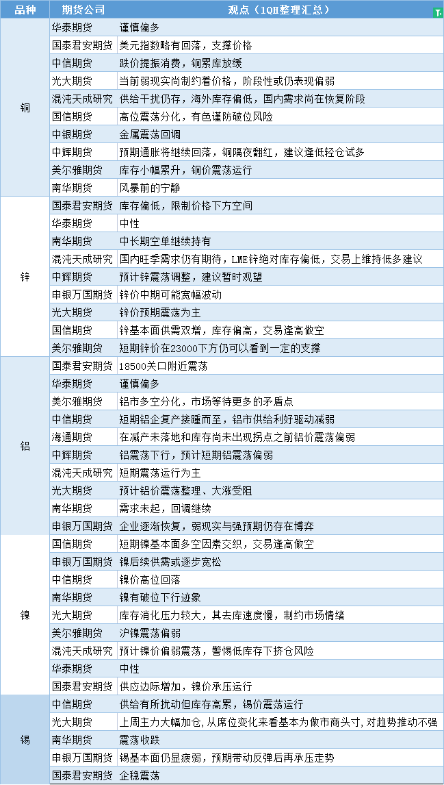 期货公司观点汇总一张图:2月14日有色系(铜、锌、铝、镍、锡等)