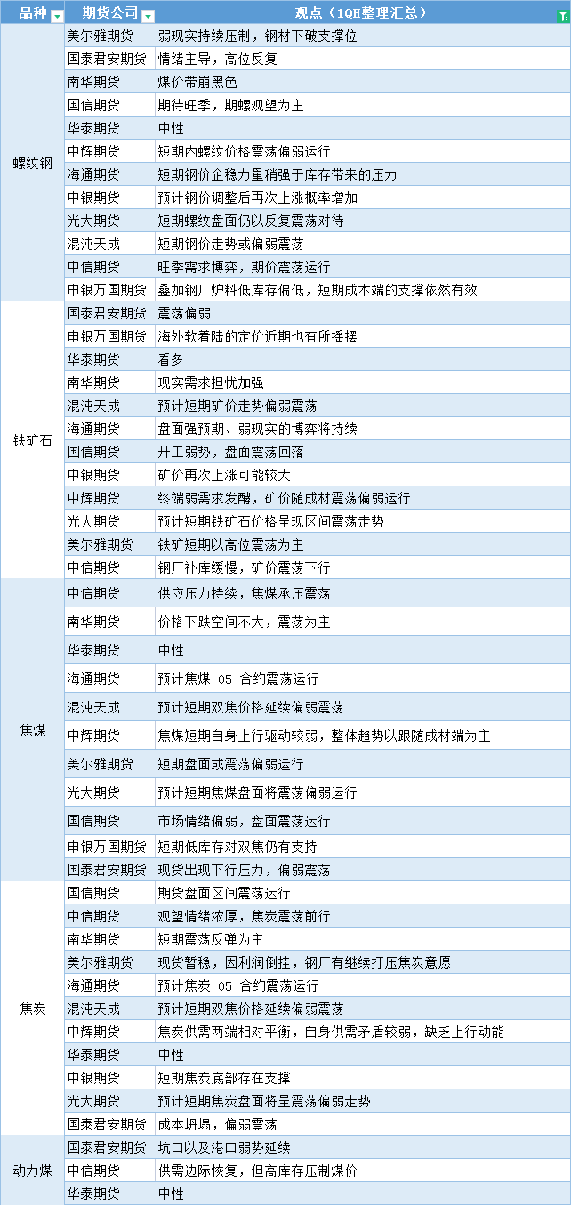 期货公司观点汇总一张图:2月14日黑色系(螺纹钢、焦煤、焦炭、铁矿石、动力煤等)