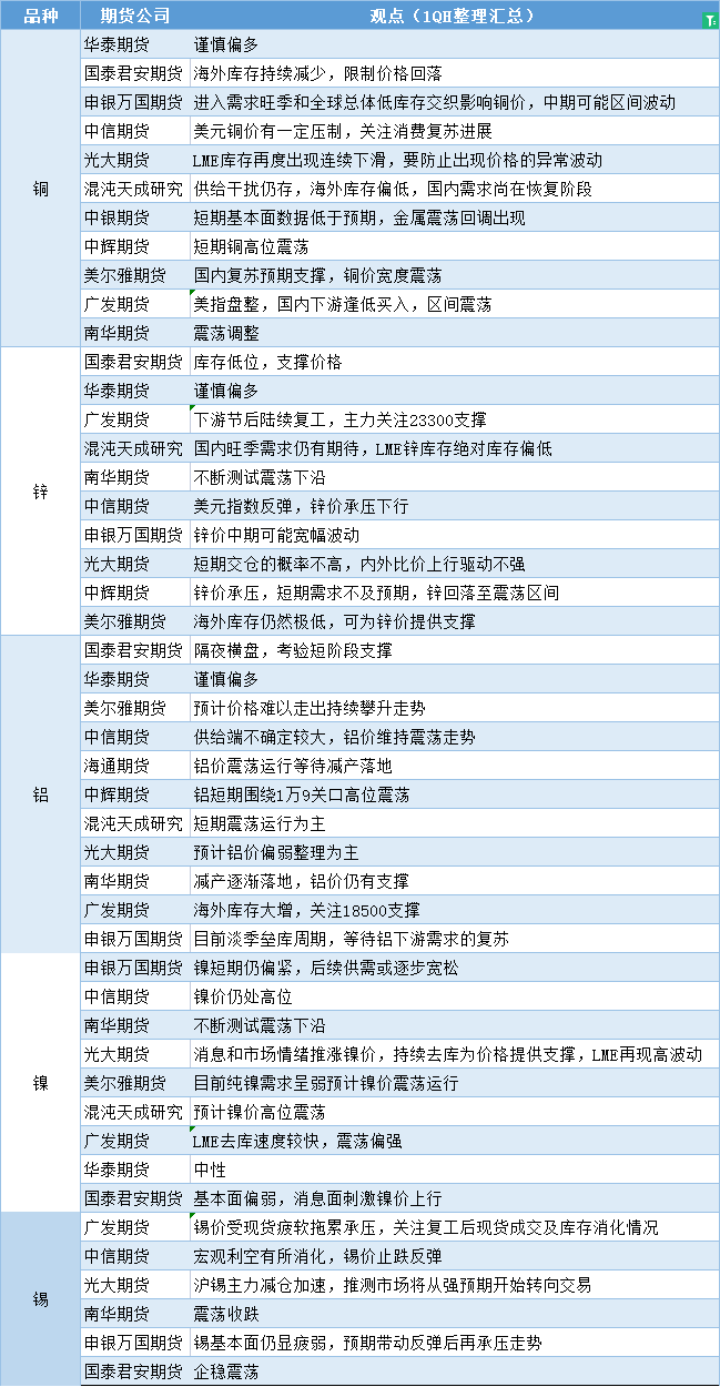 期货公司观点汇总一张图:2月10日有色系(铜、锌、铝、镍、锡等)