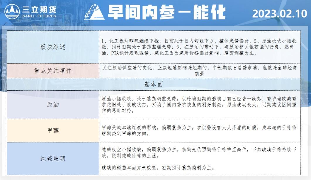 三立期货2月10日早间内参——能化