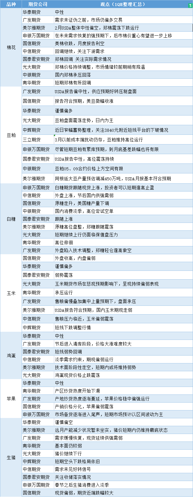 期货公司观点汇总一张图:2月9日农产品(棉花、豆粕、白糖、玉米、鸡蛋、生猪等)
