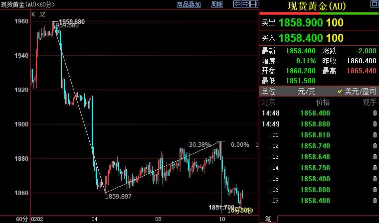 现货黄金交易策略:金价失守1860关口,关注布林线下轨支撑