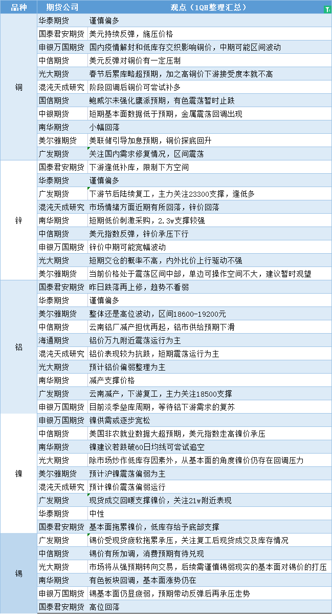 期货公司观点汇总一张图:2月8日有色系(铜、锌、铝、镍、锡等)