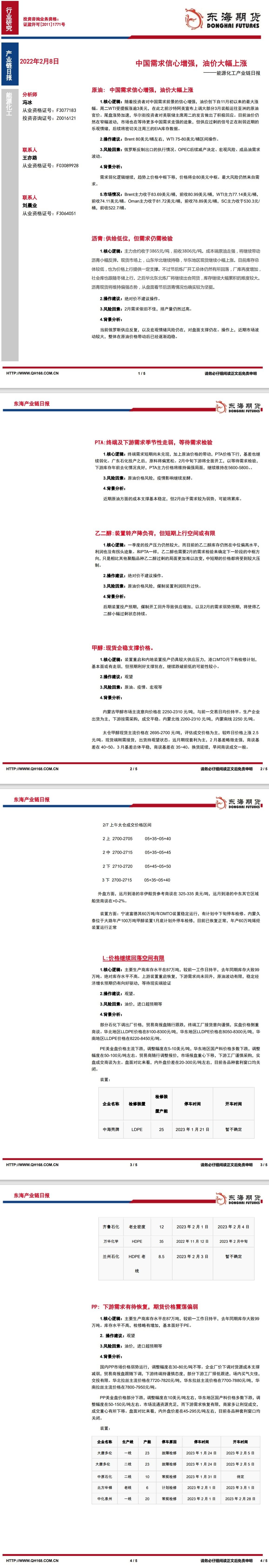 【东海期货2月8日产业链日报】能化篇:中国需求信心增强,油价大幅上涨