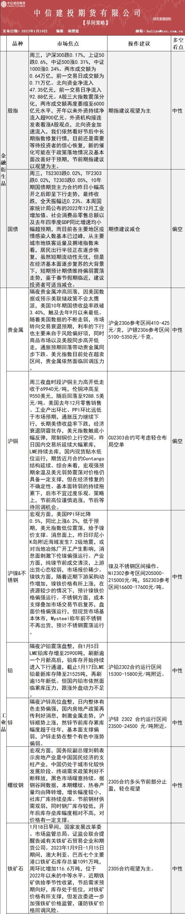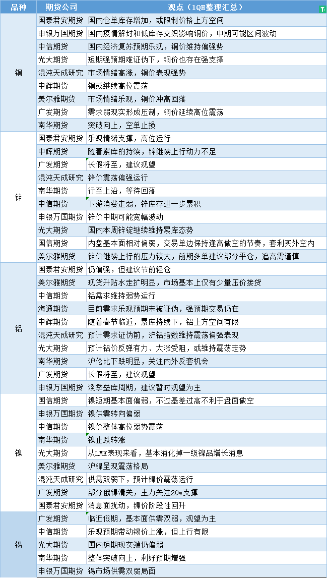 期货公司观点汇总一张图:1月19日有色系(铜、锌、铝、镍、锡等)