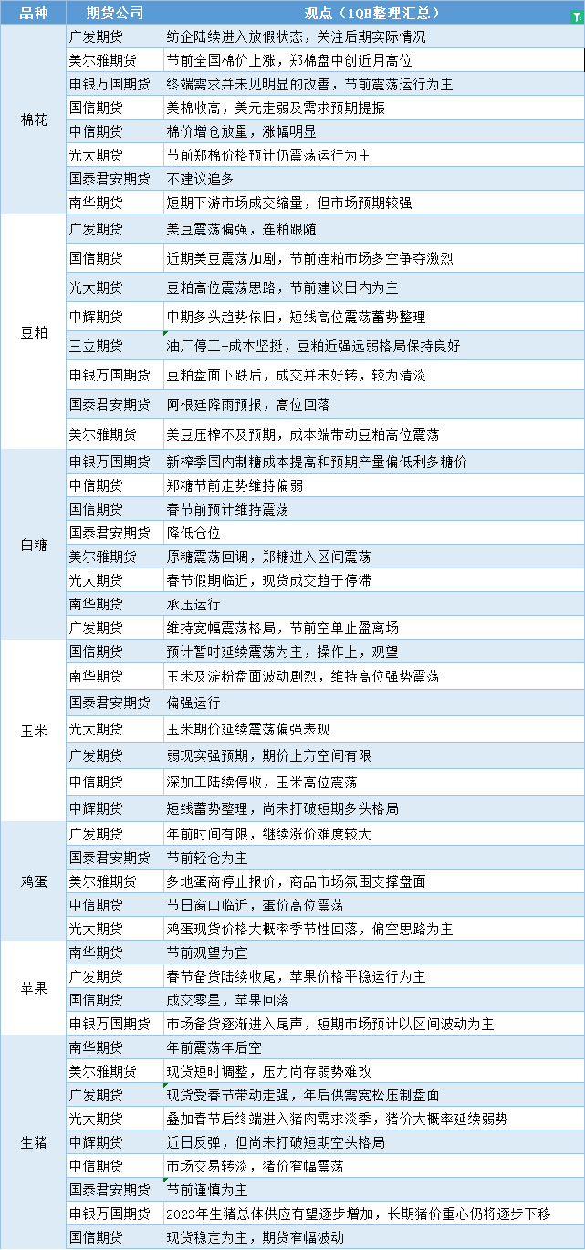 期货公司观点汇总一张图:1月19日农产品(棉花、豆粕、白糖、玉米、鸡蛋、生猪等)