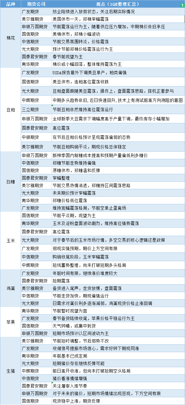 期货公司观点汇总一张图:1月17日农产品(棉花、豆粕、白糖、玉米、鸡蛋、生猪等)