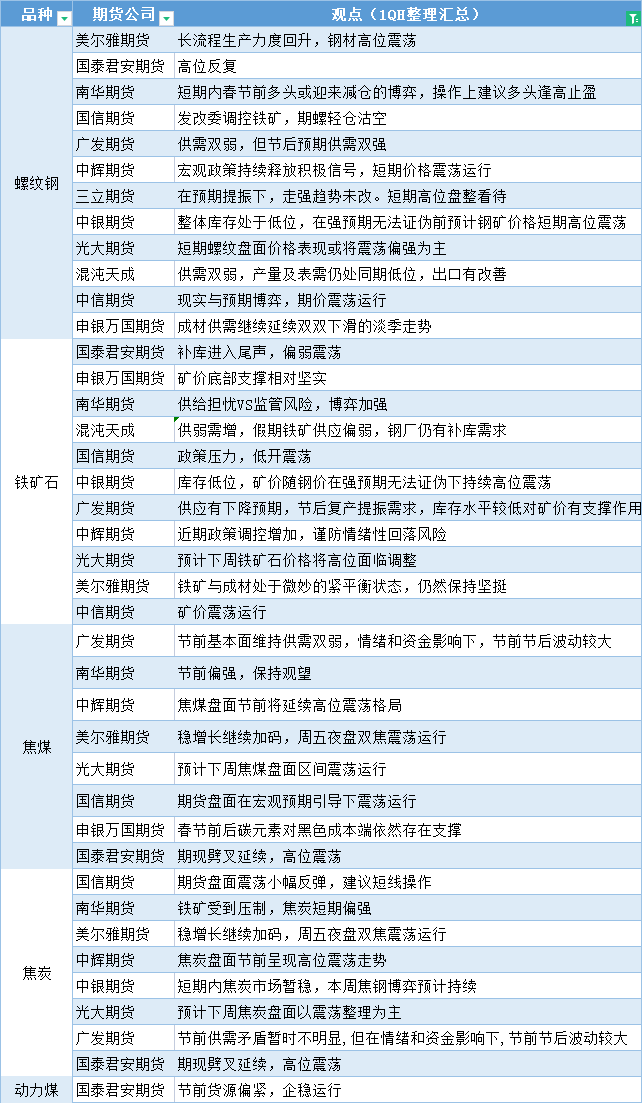 期货公司观点汇总一张图:1月16日黑色系(螺纹钢、焦煤、焦炭、铁矿石、动力煤等)