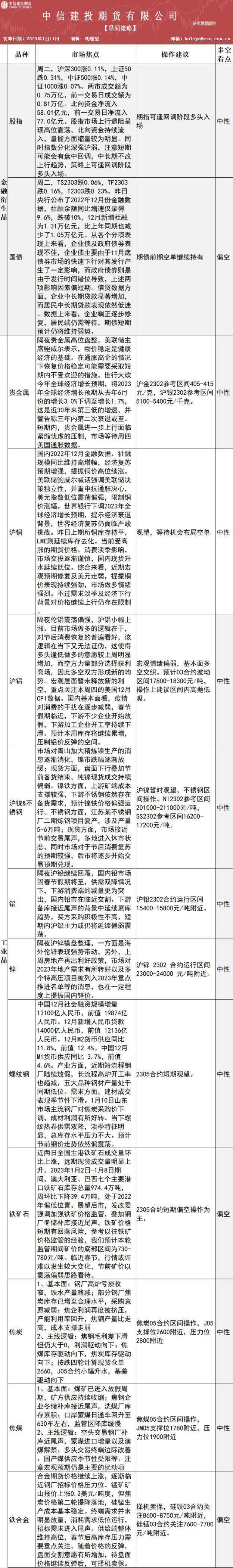 中信建投期货1月11日早间交易策略