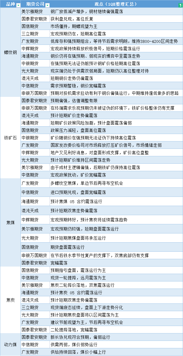 期货公司观点汇总一张图:1月11日黑色系(螺纹钢、焦煤、焦炭、铁矿石、动力煤等)