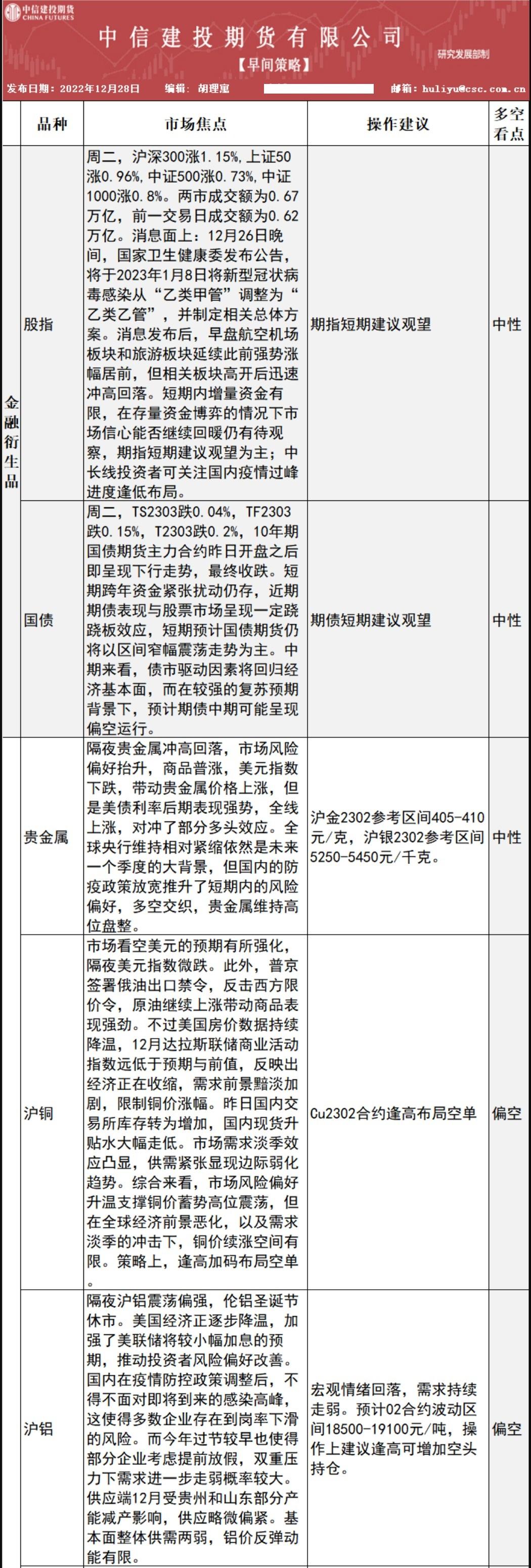 中信建投期货12月28日早间交易策略