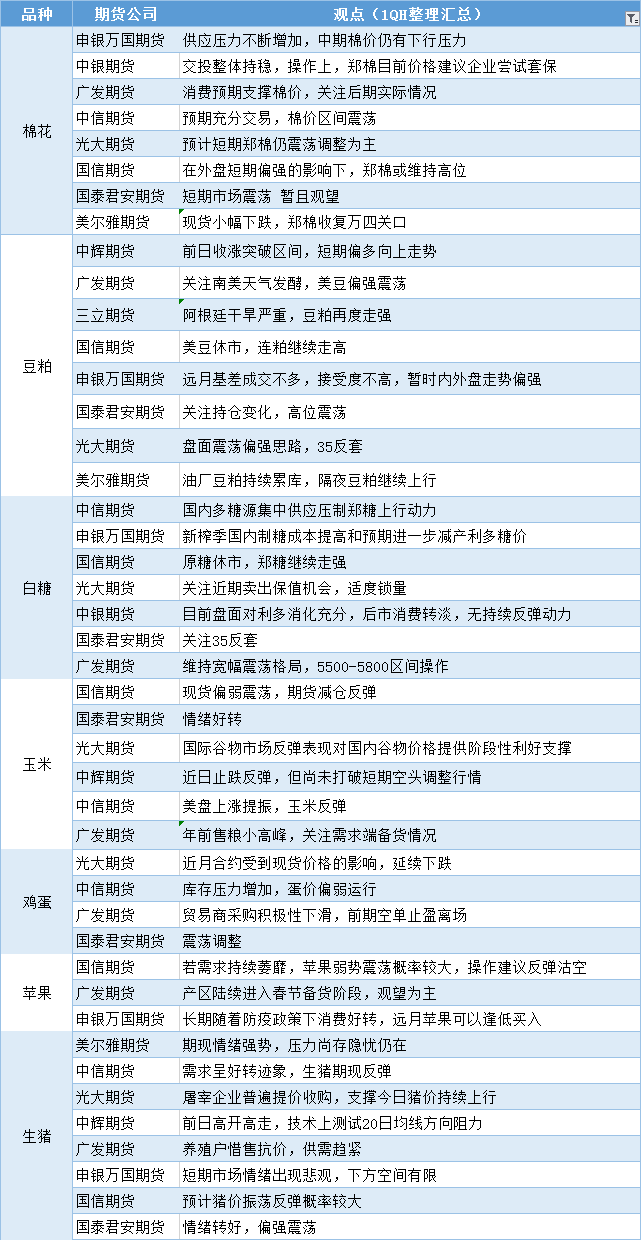 期货公司观点汇总一张图:12月27日农产品(棉花、豆粕、白糖、玉米、鸡蛋、生猪等)