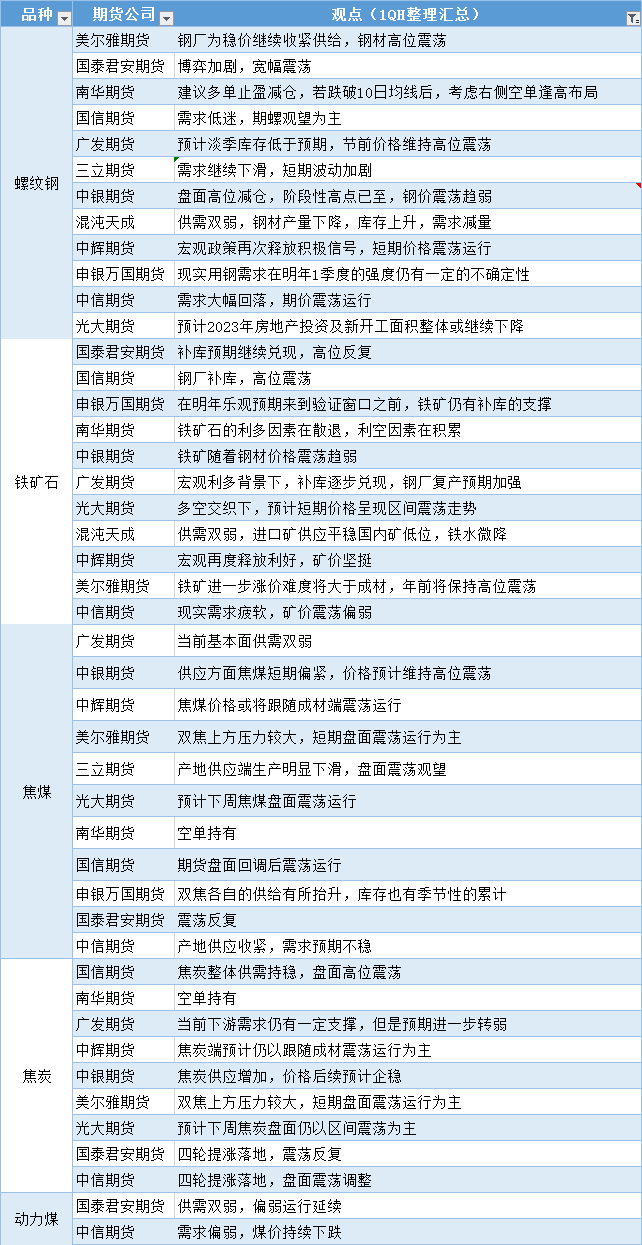 期货公司观点汇总一张图:12月26日黑色系(螺纹钢、焦煤、焦炭、铁矿石、动力煤等)