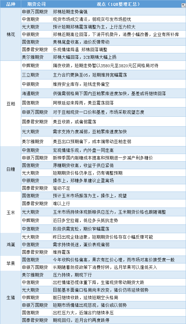 期货公司观点汇总一张图:12月20日农产品(棉花、豆粕、白糖、玉米、鸡蛋、生猪等)