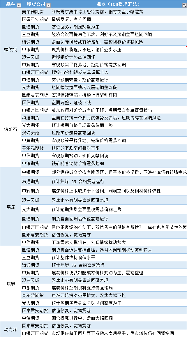 期货公司观点汇总一张图:12月20日黑色系(螺纹钢、焦煤、焦炭、铁矿石、动力煤等)