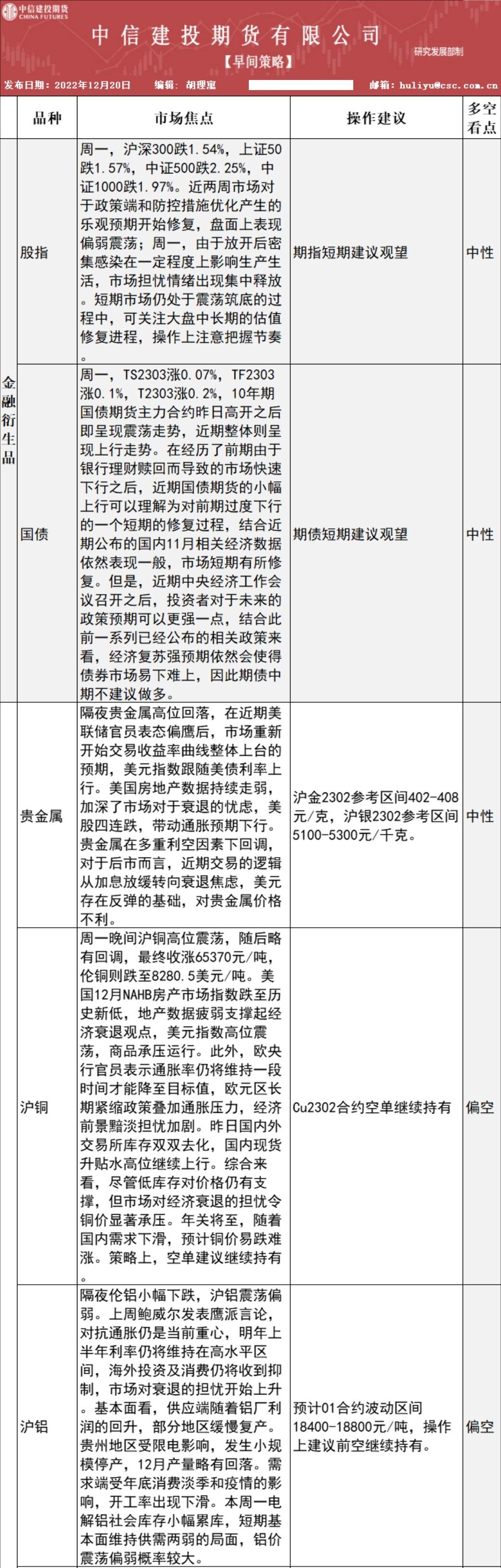 中信建投期货12月20日早间交易策略