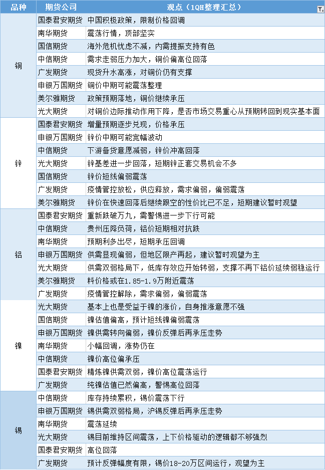 期货公司观点汇总一张图:12月19日有色系(铜、锌、铝、镍、锡等)