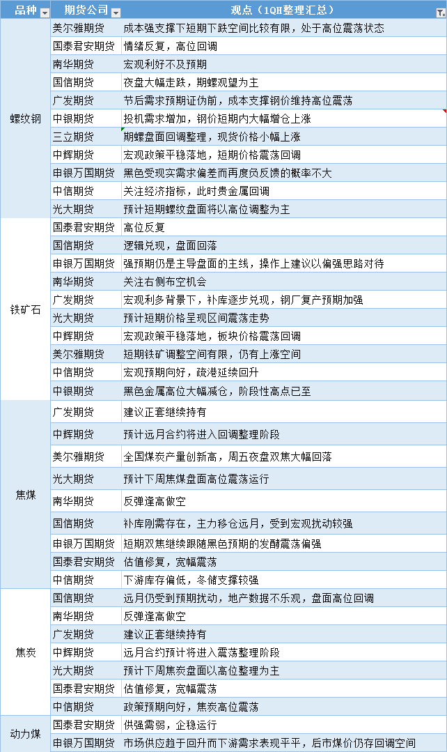 期货公司观点汇总一张图:12月19日黑色系(螺纹钢、焦煤、焦炭、铁矿石、动力煤等)