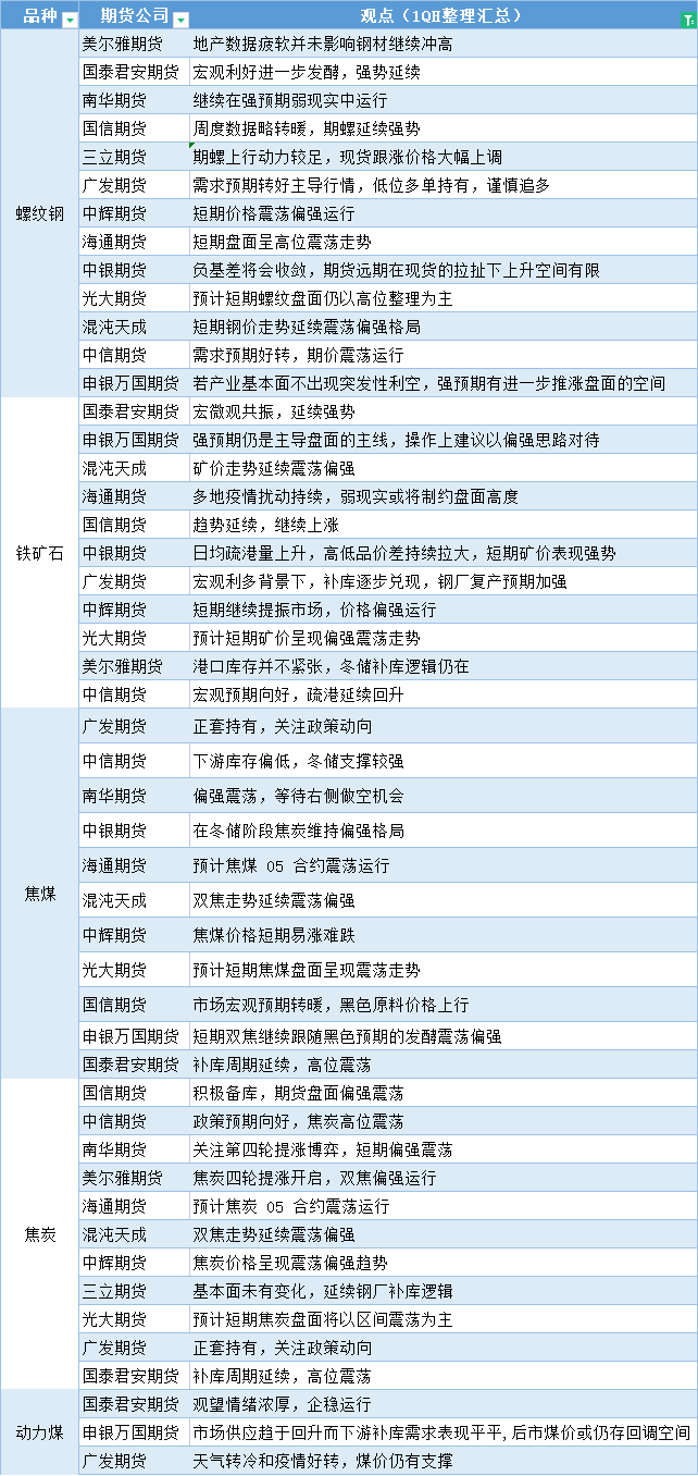 期货公司观点汇总一张图:12月16日黑色系(螺纹钢、焦煤、焦炭、铁矿石、动力煤等)
