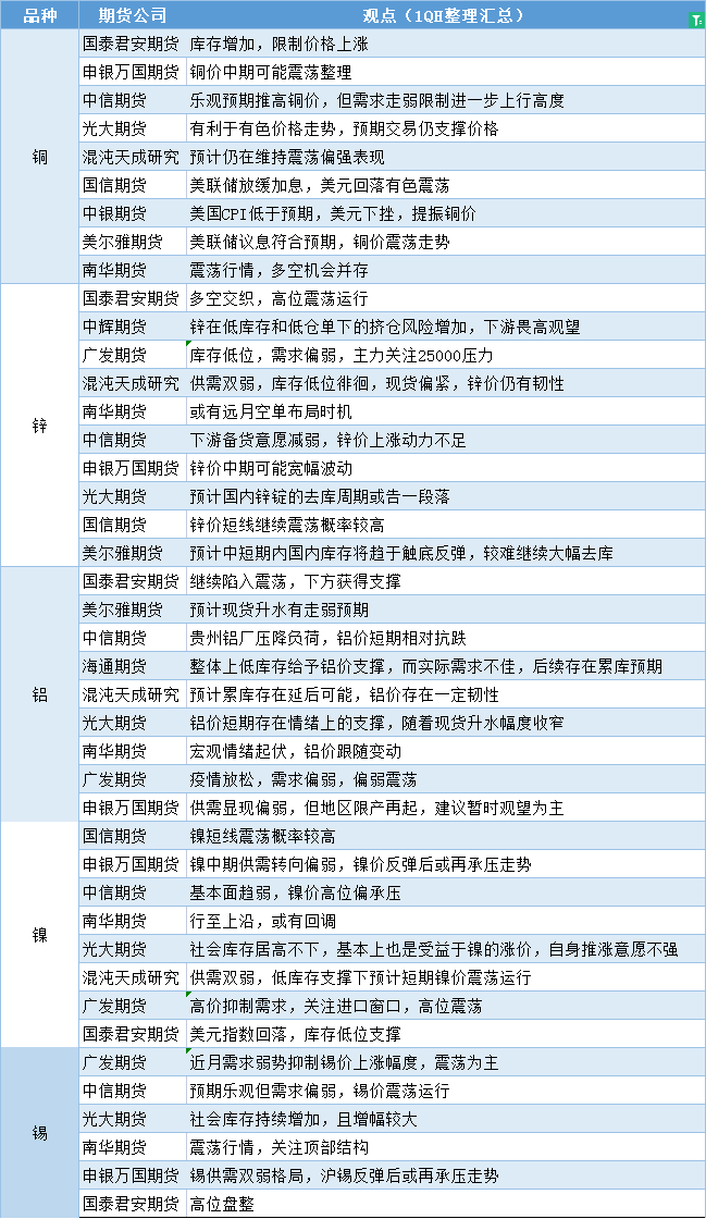 期货公司观点汇总一张图:12月15日有色系(铜、锌、铝、镍、锡等)