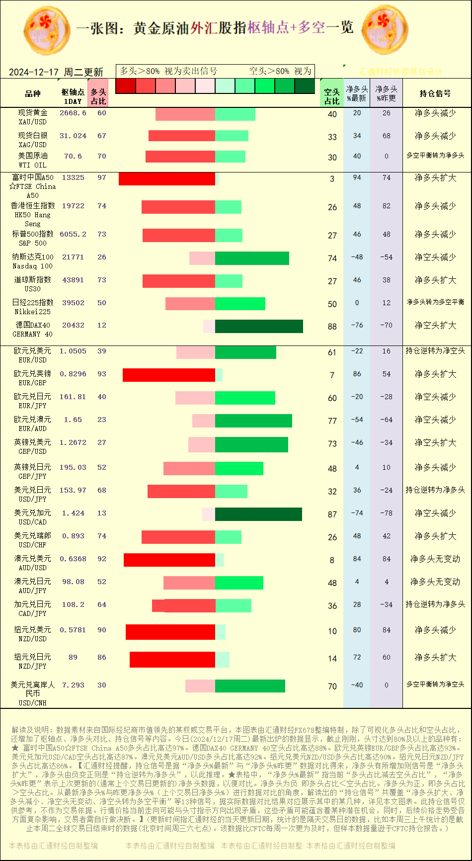 一张图:2024/12/17黄金原油外汇股指“枢纽点+多空持仓信号”一览