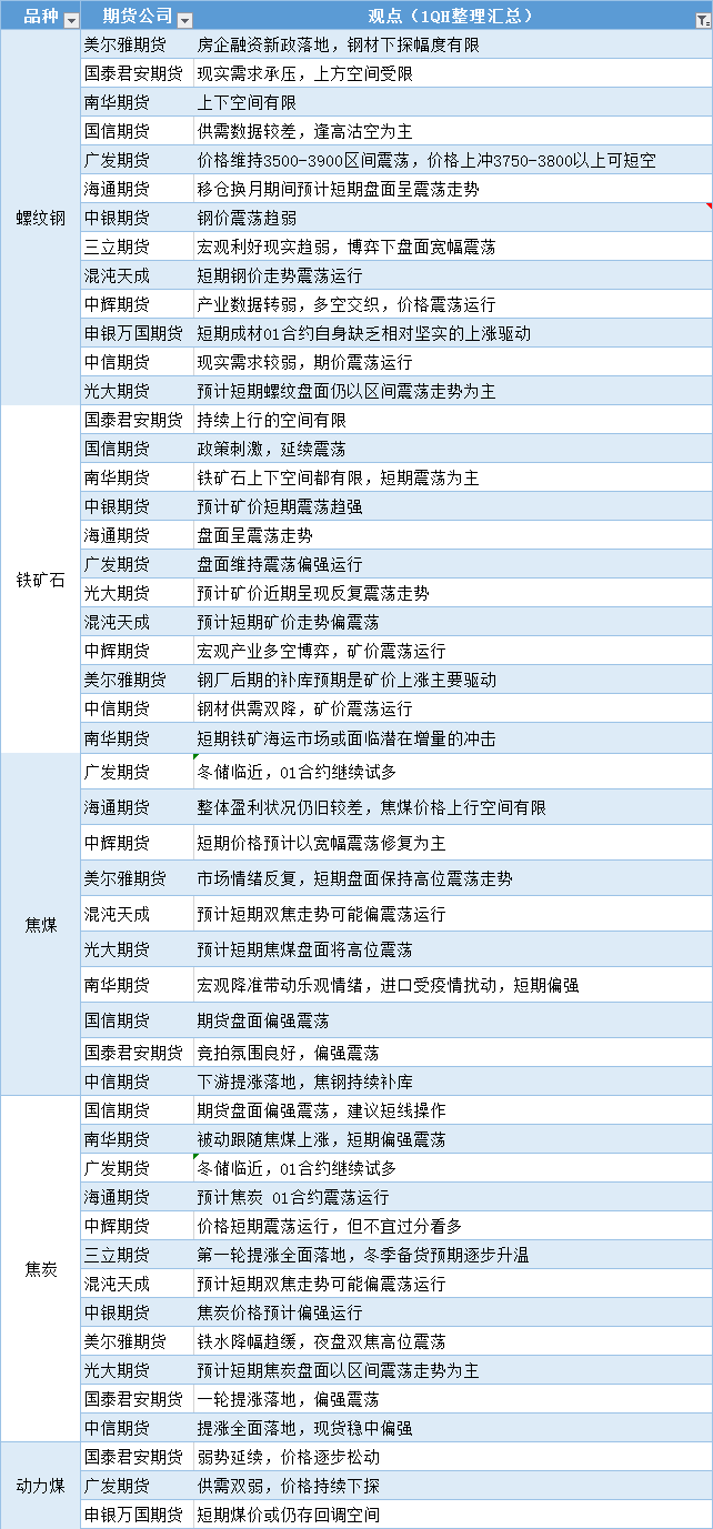 期货公司观点汇总一张图:11月25日黑色系(螺纹钢、焦煤、焦炭、铁矿石、动力煤等)