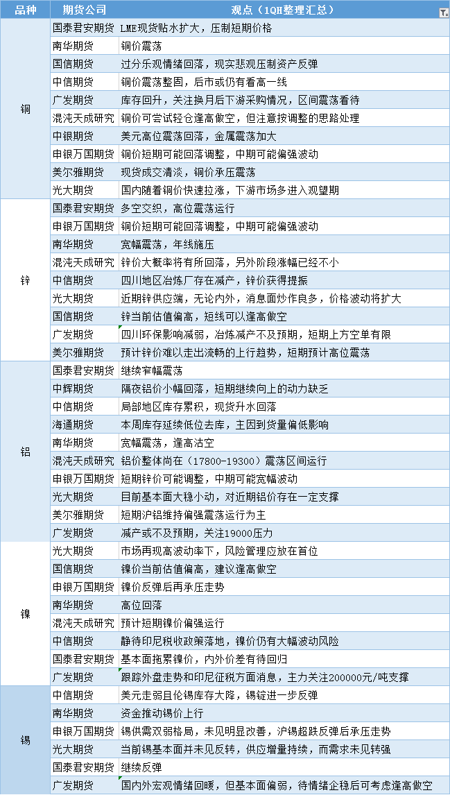 期货公司观点汇总一张图:11月17日有色系(铜、锌、铝、镍、锡等)