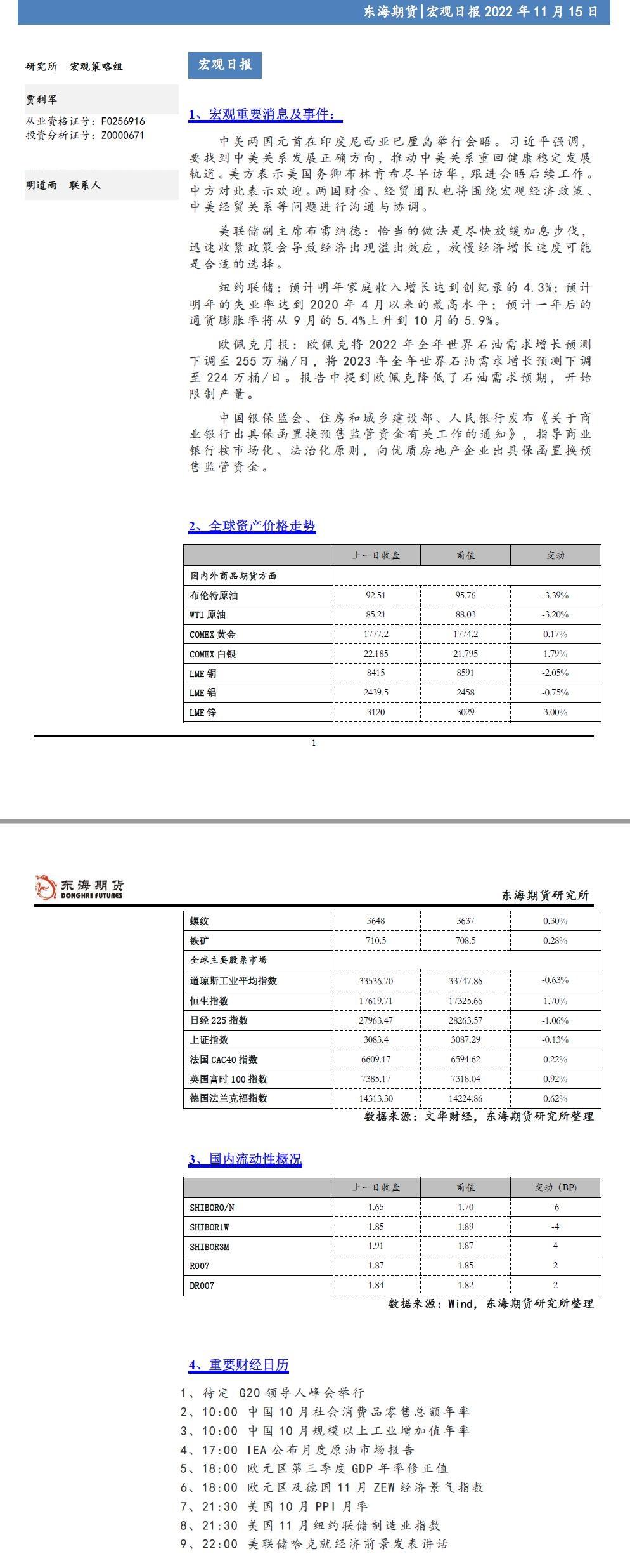 【东海期货11月15日宏观日报】:国内部分地区疫情防控措施放松