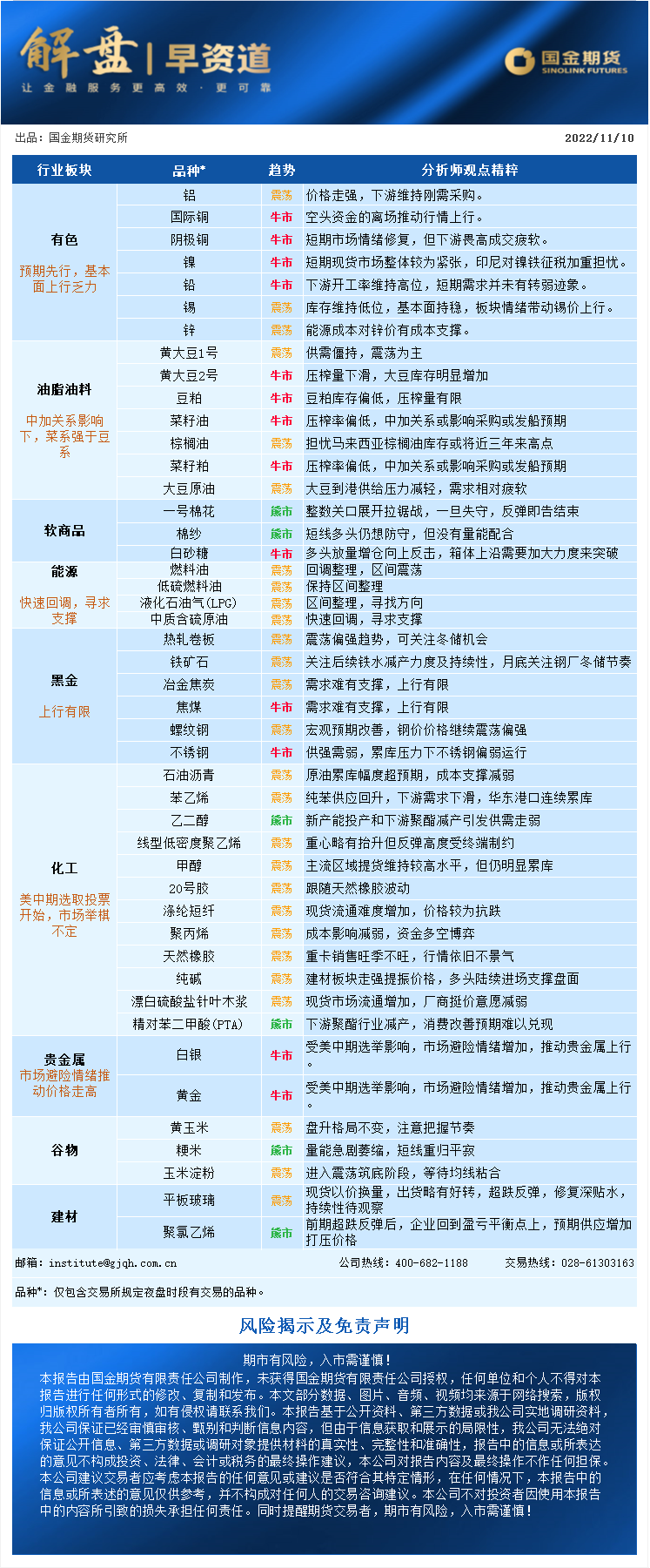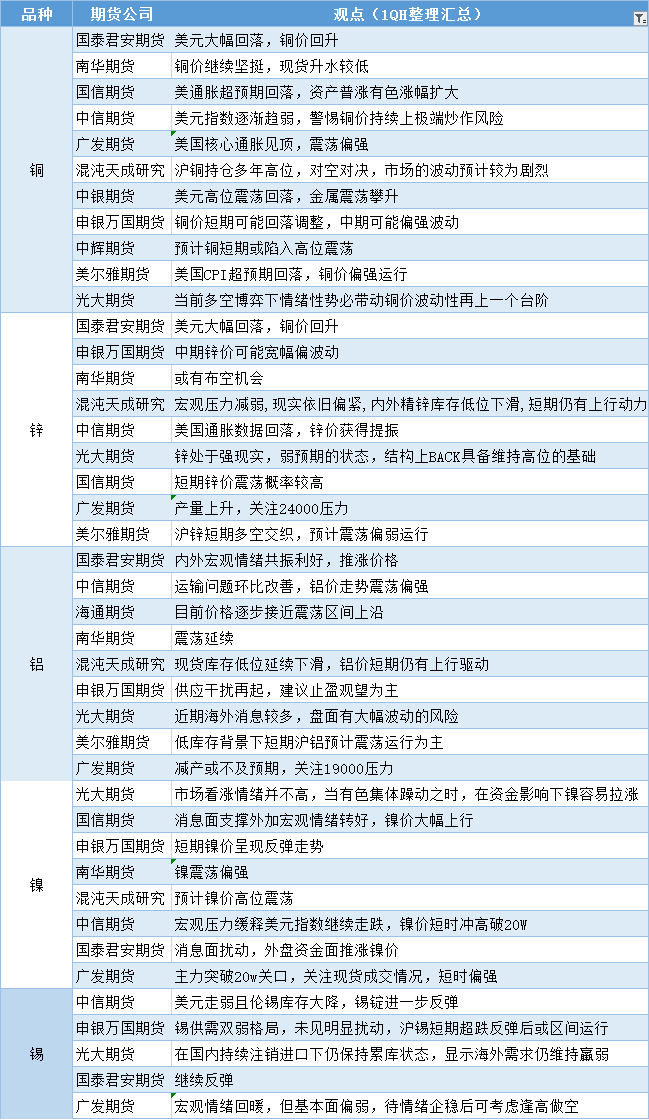 期货公司观点汇总一张图:11月11日有色系(铜、锌、铝、镍、锡等)