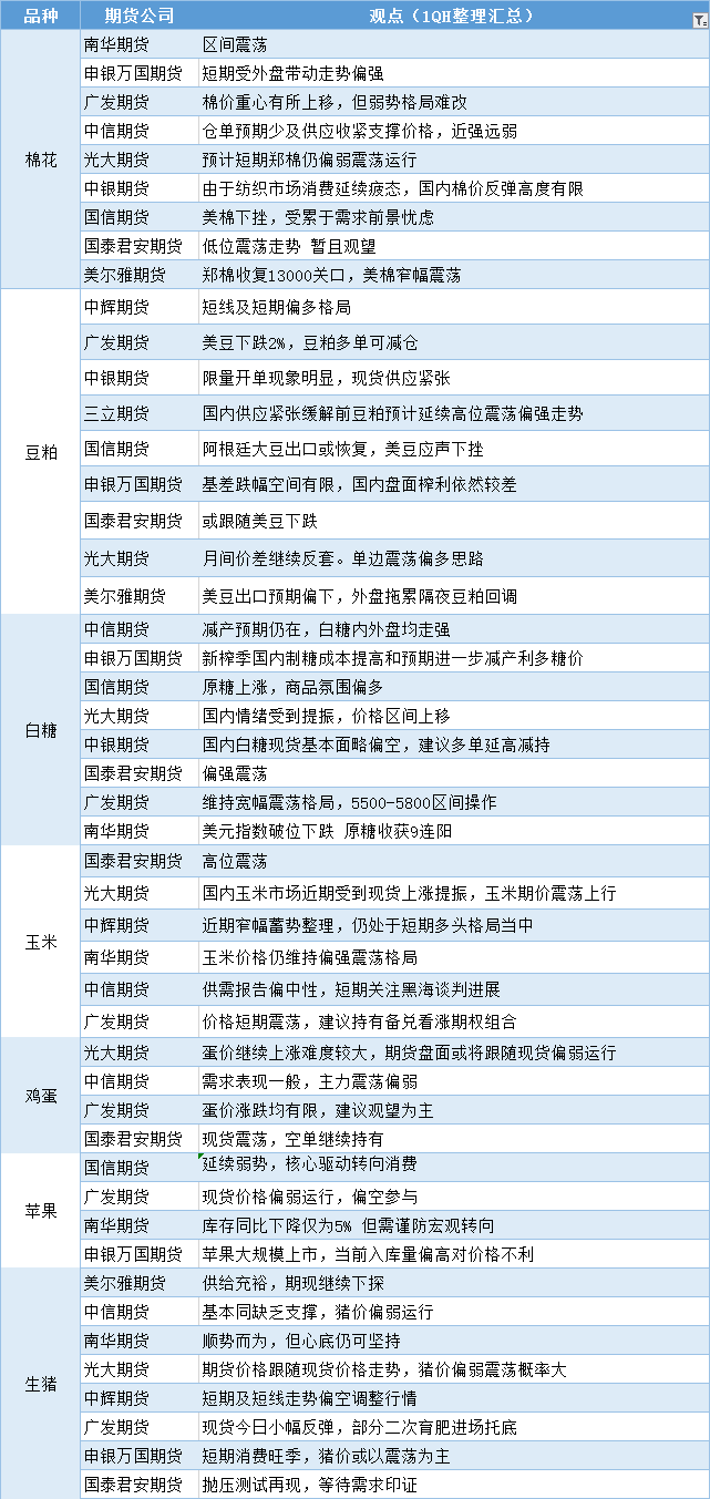 期货公司观点汇总一张图:11月11日农产品(棉花、豆粕、白糖、玉米、鸡蛋、生猪等)