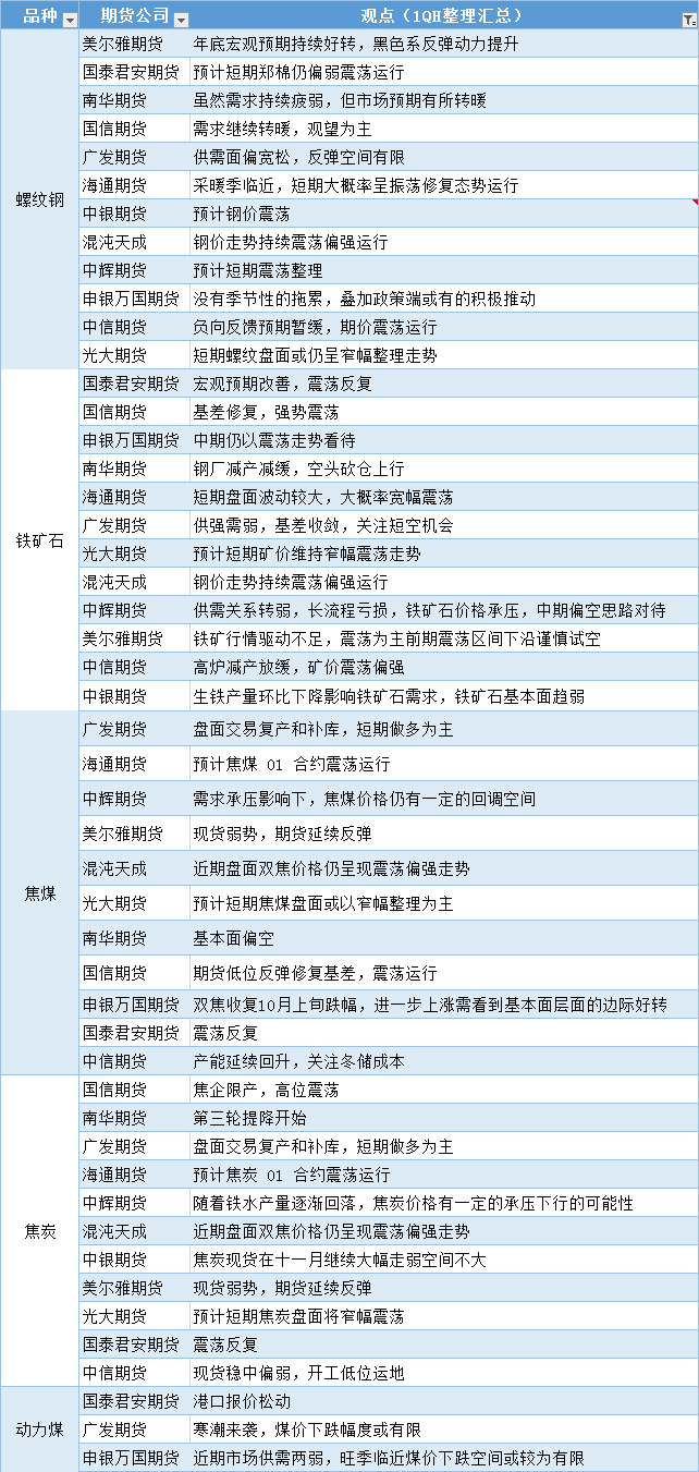 期货公司观点汇总一张图:11月9日黑色系(螺纹钢、焦煤、焦炭、铁矿石、动力煤等)