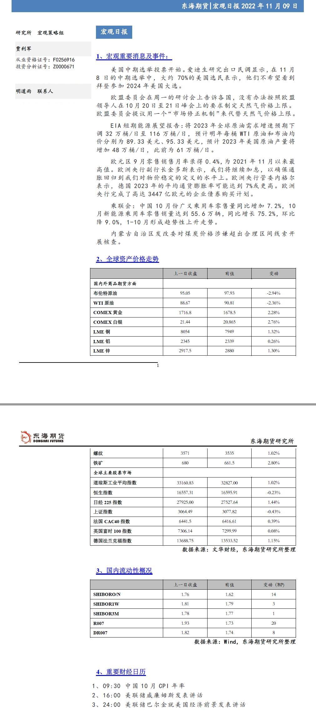 【东海期货11月9日宏观日报】:美元持续下跌,全球风险偏好继续升温