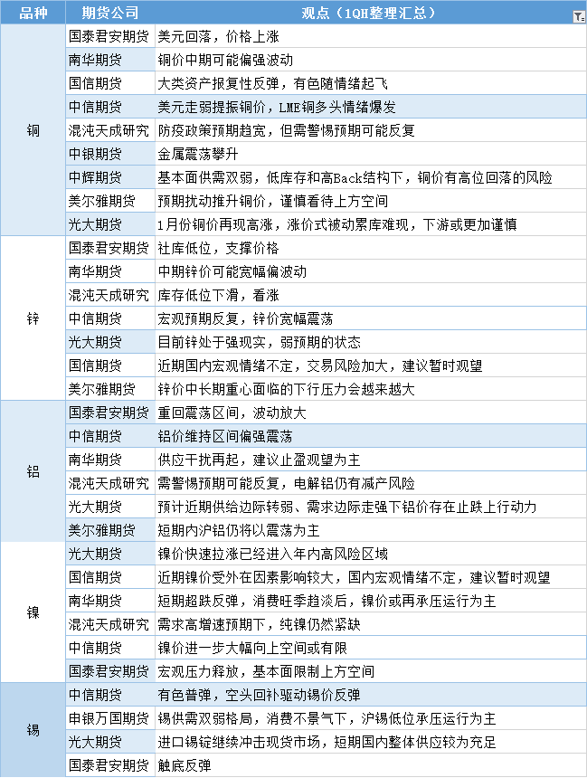 期货公司观点汇总一张图:11月7日有色系(铜、锌、铝、镍、锡等)