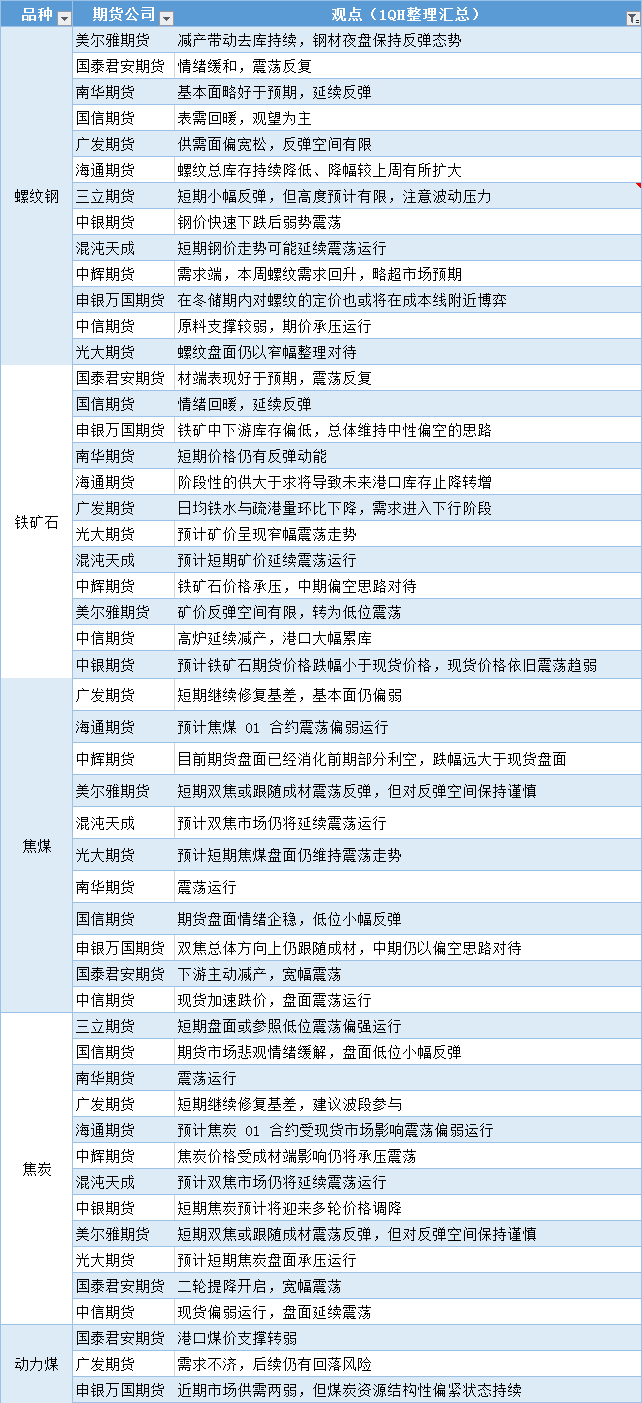 期货公司观点汇总一张图:11月4日黑色系(螺纹钢、焦煤、焦炭、铁矿石、动力煤等)