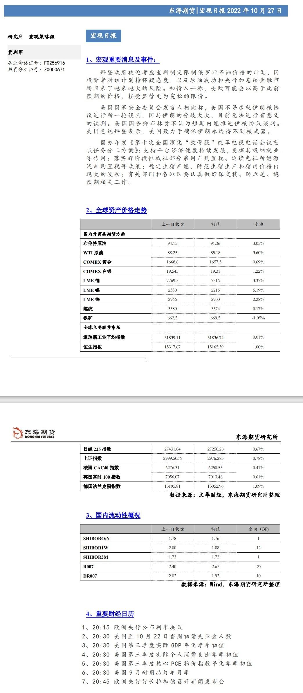 三立期货10月26日早间内参——宏观