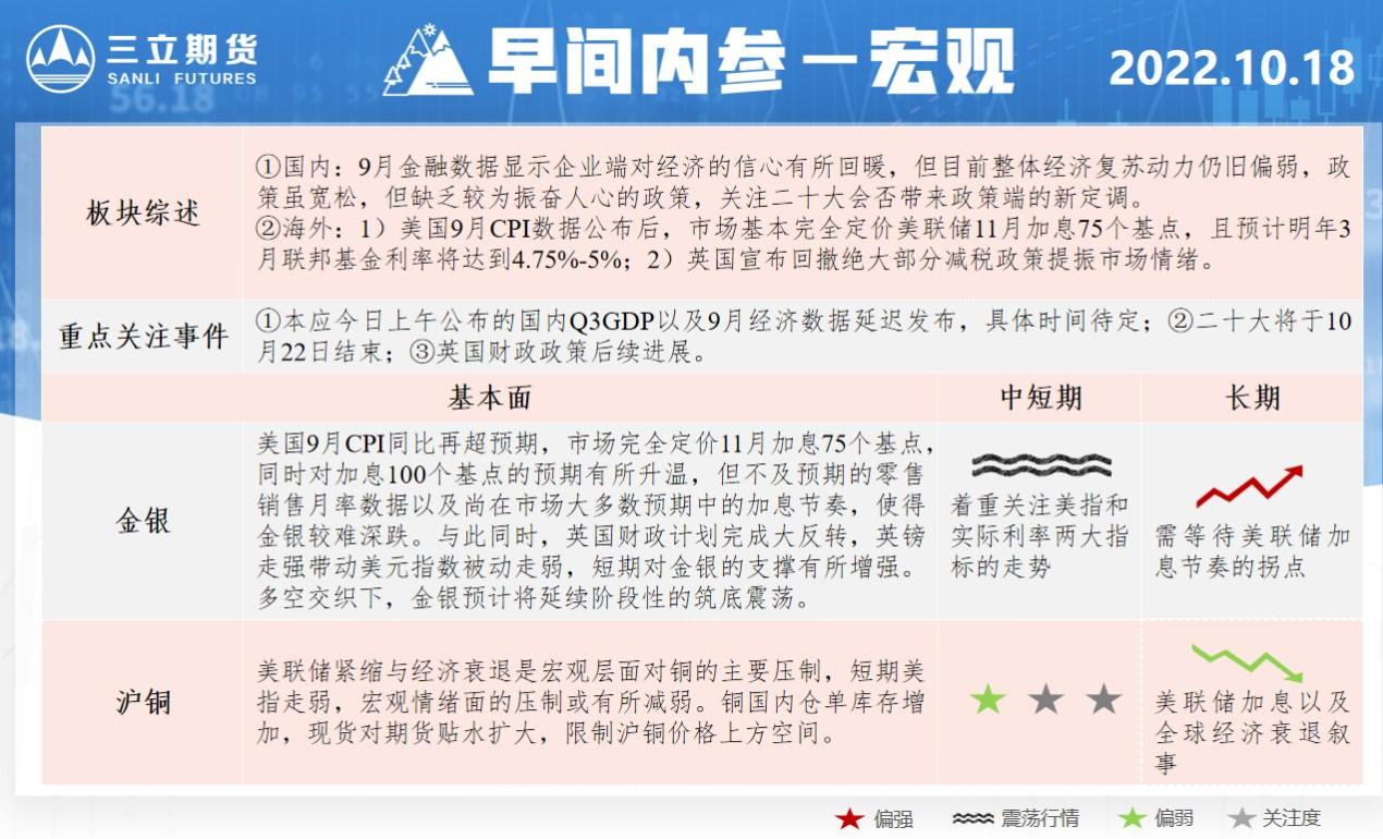 三立期货10月18日早间内参——宏观