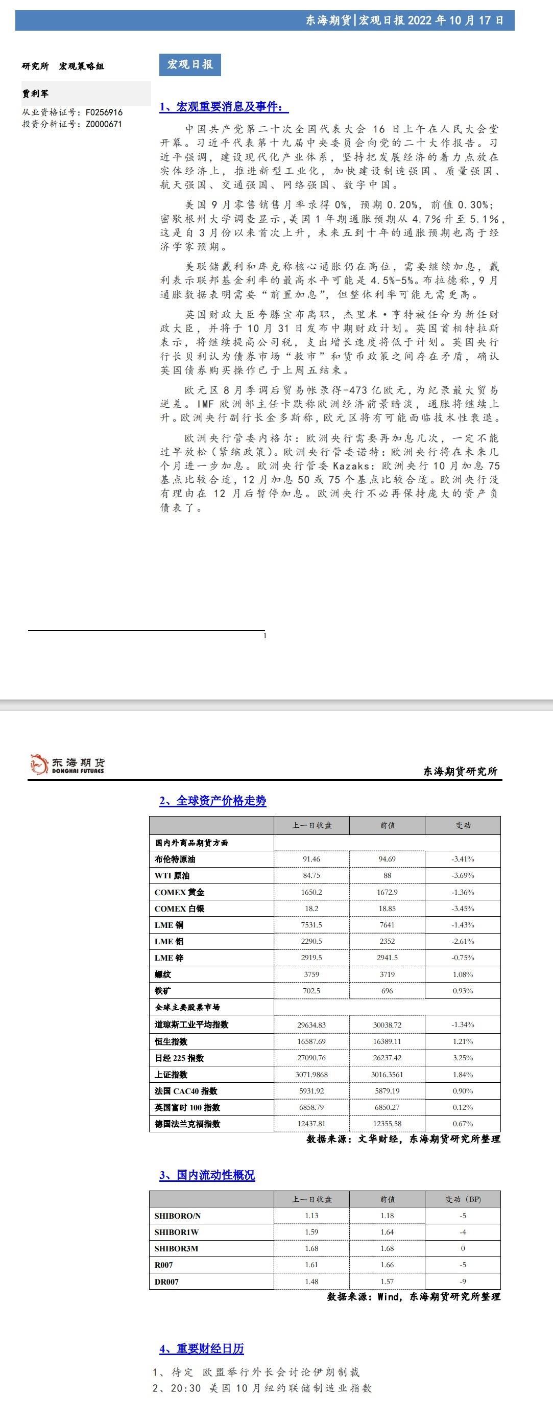 【东海期货10月17日宏观日报】:美元再次大幅走强,风险资产大幅回落