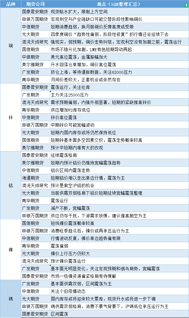 期货公司观点汇总一张图:10月13日有色系(铜、锌、铝、镍、锡等)