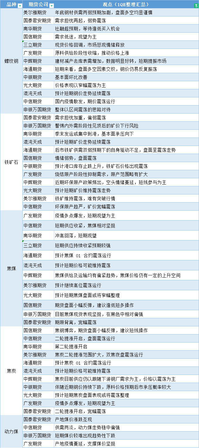 期货公司观点汇总一张图:10月13日黑色系(螺纹钢、焦煤、焦炭、铁矿石、动力煤等)