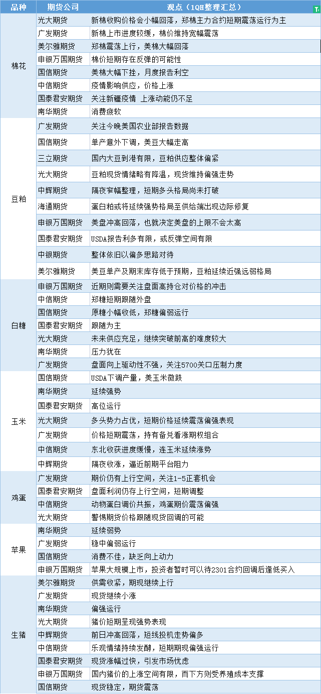 期货公司观点汇总一张图:10月13日农产品(棉花、豆粕、白糖、玉米、鸡蛋、生猪等)