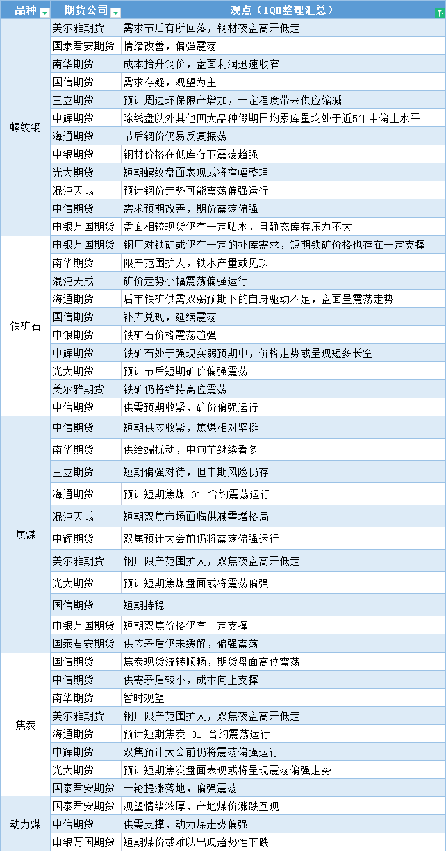 期货公司观点汇总一张图:10月11日黑色系(螺纹钢、焦煤、焦炭、铁矿石、动力煤等)